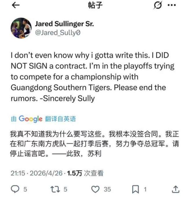 不过对于这则流言,萨林杰在社媒亲自辟谣,他称自己根本没签合同,正在和广东一起打季后赛,努力争夺总冠军。这也让不少广东球迷稍微舒了一口气,如果萨林杰真的和波多黎各联赛签约,一旦广东在季后赛陷入被动,他恐怕真的会破罐子破摔,想着早早结束CBA联赛,去波多黎各挣钱。