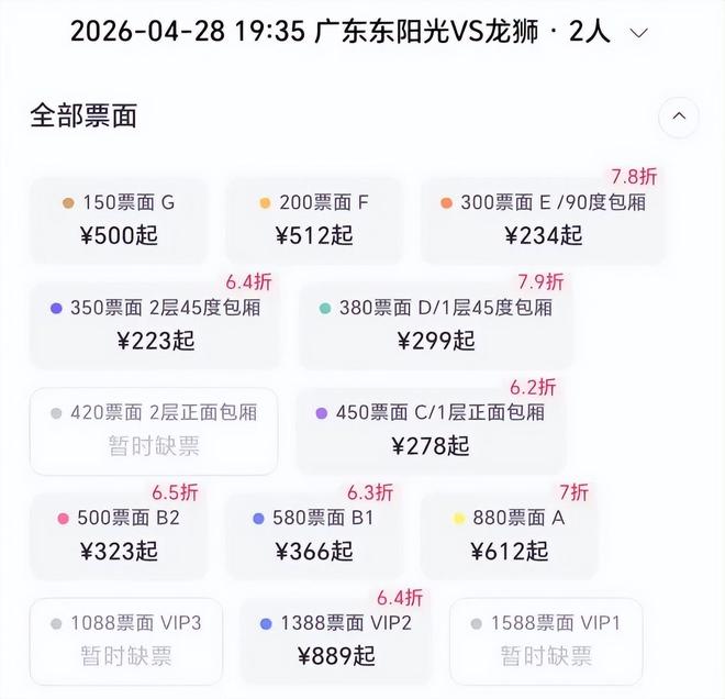 CBA季后赛即将开打,广东男篮的对手是广州男篮。和以往的情况不同,广东男篮今年的主场球票销售遇冷,不仅没有出现前几年一票难求的局面,甚至在比赛开打前还有很多球票没有出售出去。为此广东男篮的主场球票不得不打折出售,目前多个档次的球票已经降低到了六点几折。很多广东球迷表示,这在广东男篮来说还是头一次,以前哪怕球队的成绩再不好,也没有出现过这种情况。