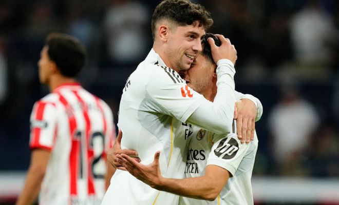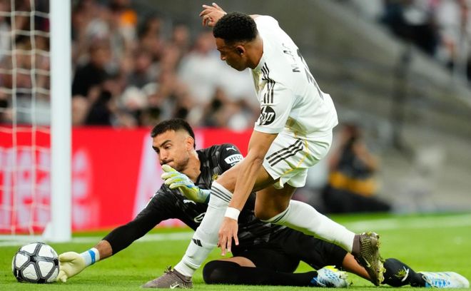 下半场易边再战。第47分钟,贝林厄姆在禁区线上起脚低射。角度不够刁钻。门将轻松把球拦下。第51分钟,皇马终于打破僵局。巴尔韦德在禁区弧顶处轰出一脚超级世界波!门将没能把球扑出。6分钟后,维尼修斯在禁区右侧低射近角。门将把球扑住了。