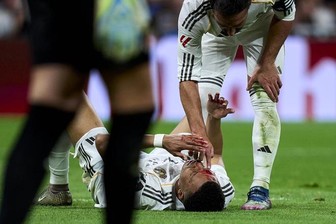 第89分钟,更具争议的一幕出现了。姆巴佩禁区内被赫罗纳后卫雷斯打到脸部后倒地,主裁依然没有判罚。随后,姆巴佩额头甚至已经流血,但阿尔贝罗拉-罗哈斯和VAR依然不为所动。