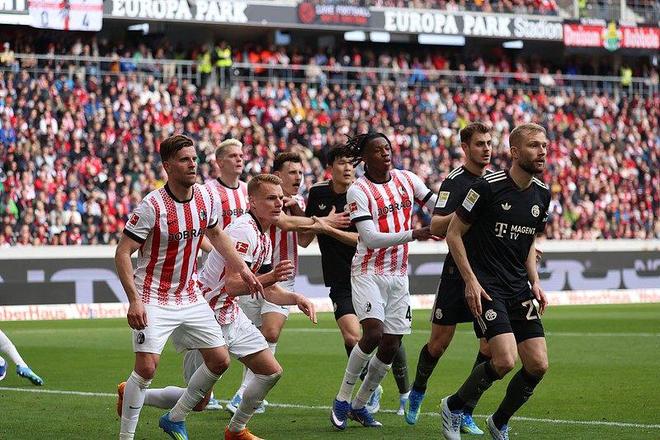 北京时间4月4日晚,德甲第28轮,弗赖堡主场对阵拜仁。比赛中。图源:视觉中国曼赞比世界波破门先拔头筹,霍勒错失良机后扩大领先。随后拜仁开始反击,比朔夫梅开二度扳平比分,卡尔压哨破门完成绝杀。最终,拜仁让二追三3-2绝杀弗赖堡。